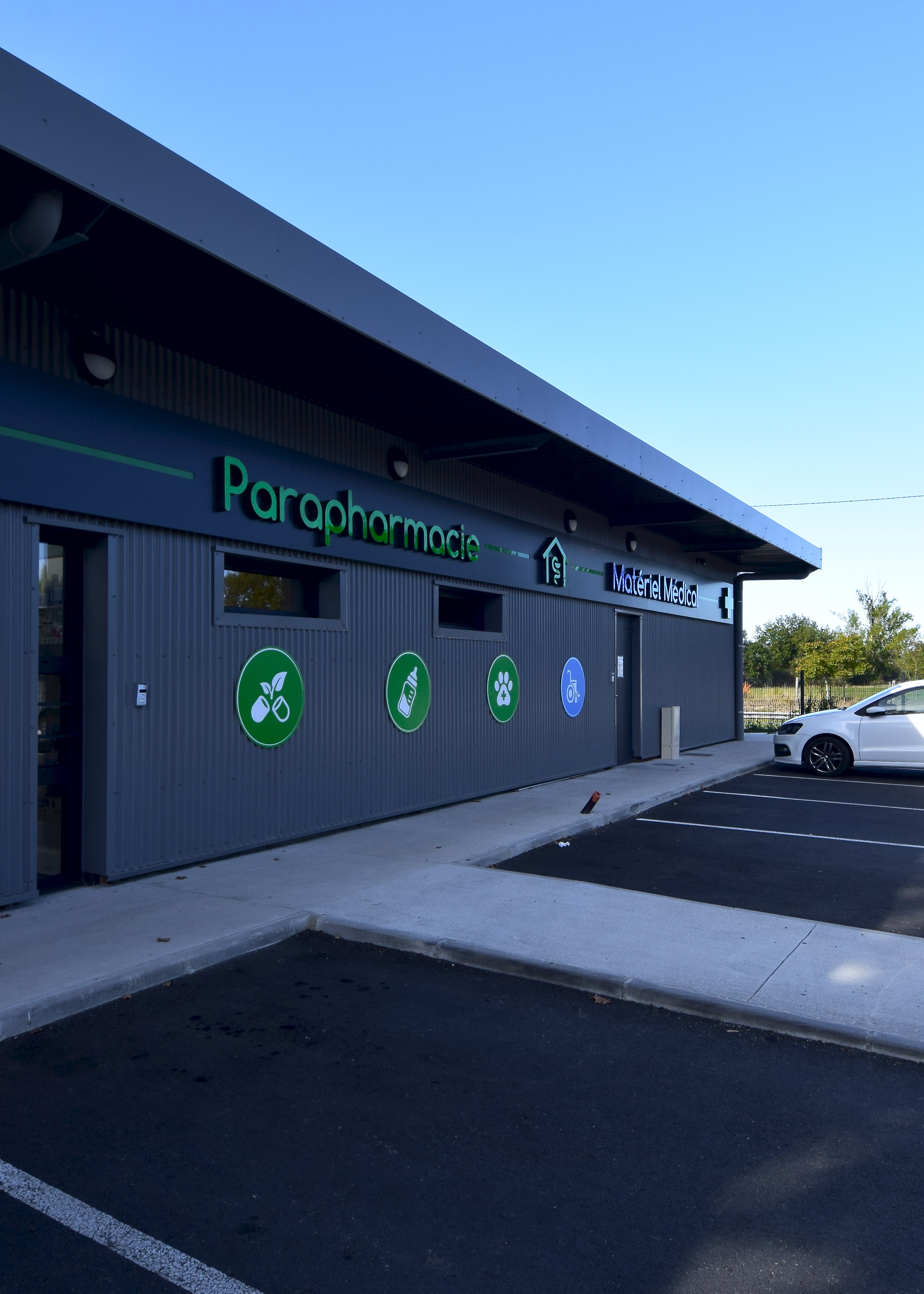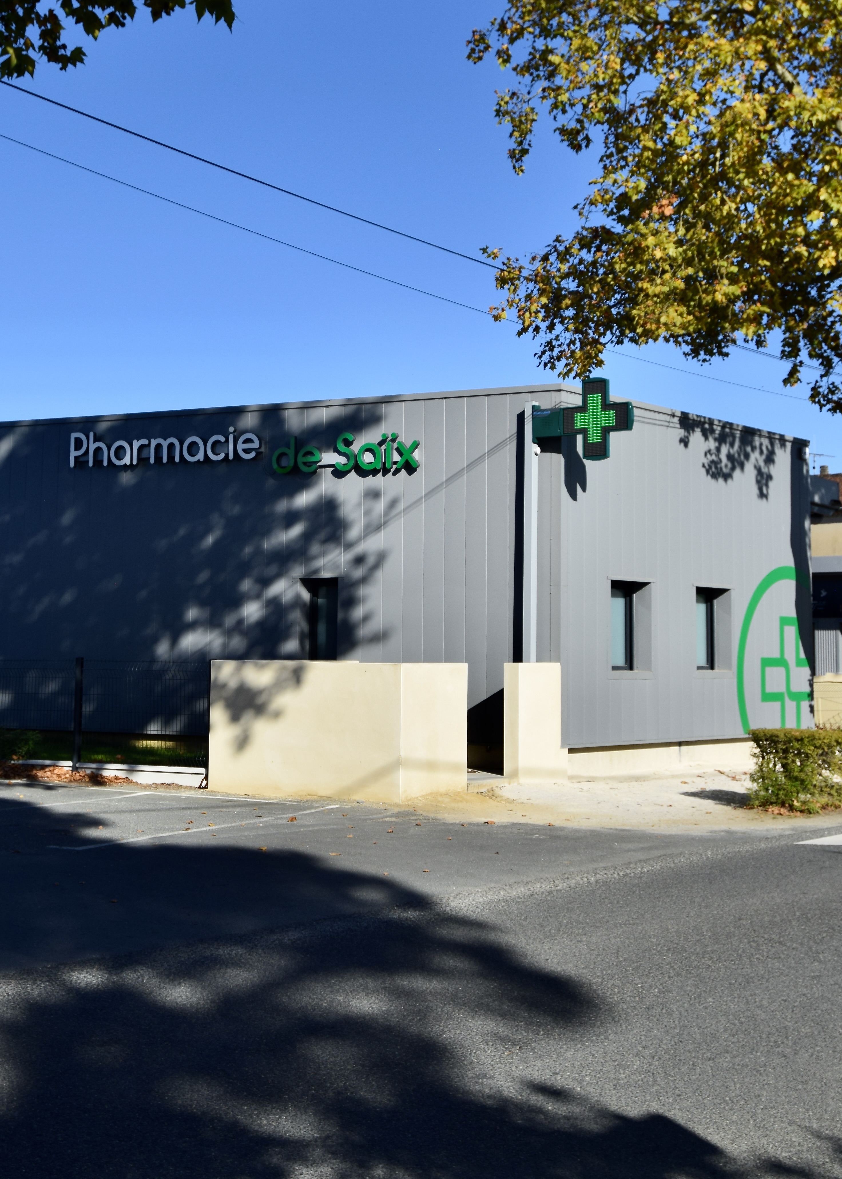 Le projet, conçu pour JJP Immobilier, consiste en la réalisation de deux bâtiments de plain-pied disposés face-à-face et en longueur. Ces constructions accueillent la nouvelle pharmacie de Saïx ainsi que plusieurs locaux destinés à la location pour différentes activités. À ce jour, une agence d'expertise comptable et un magasin de pompes funèbres y sont implantés. Les choix constructifs et les matériaux ont été optimisés pour réduire les coûts, sans compromettre la qualité, la durabilité et le confort des utilisateurs.